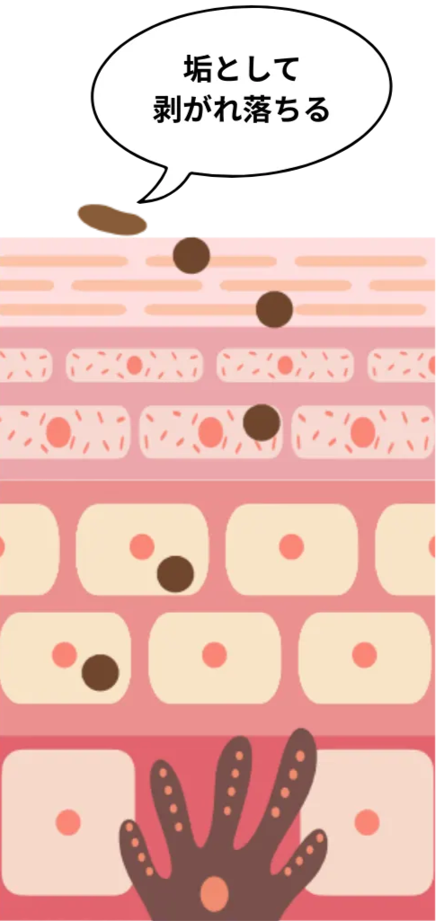 生成されたメラニンは、通常、ターンオーバー(肌の生まれ変わり)と共に剥がれ落ちます。