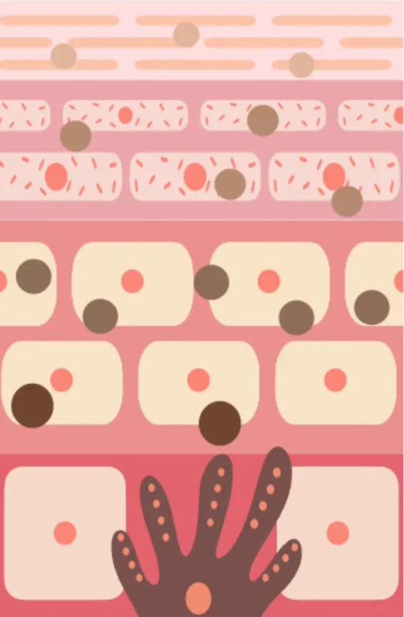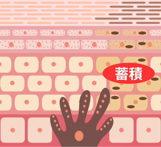 しかし、紫外線や摩擦などの刺激が継続的に加わると、メラニンが過剰に生成され、排出が追いつかなくなってしまいます。