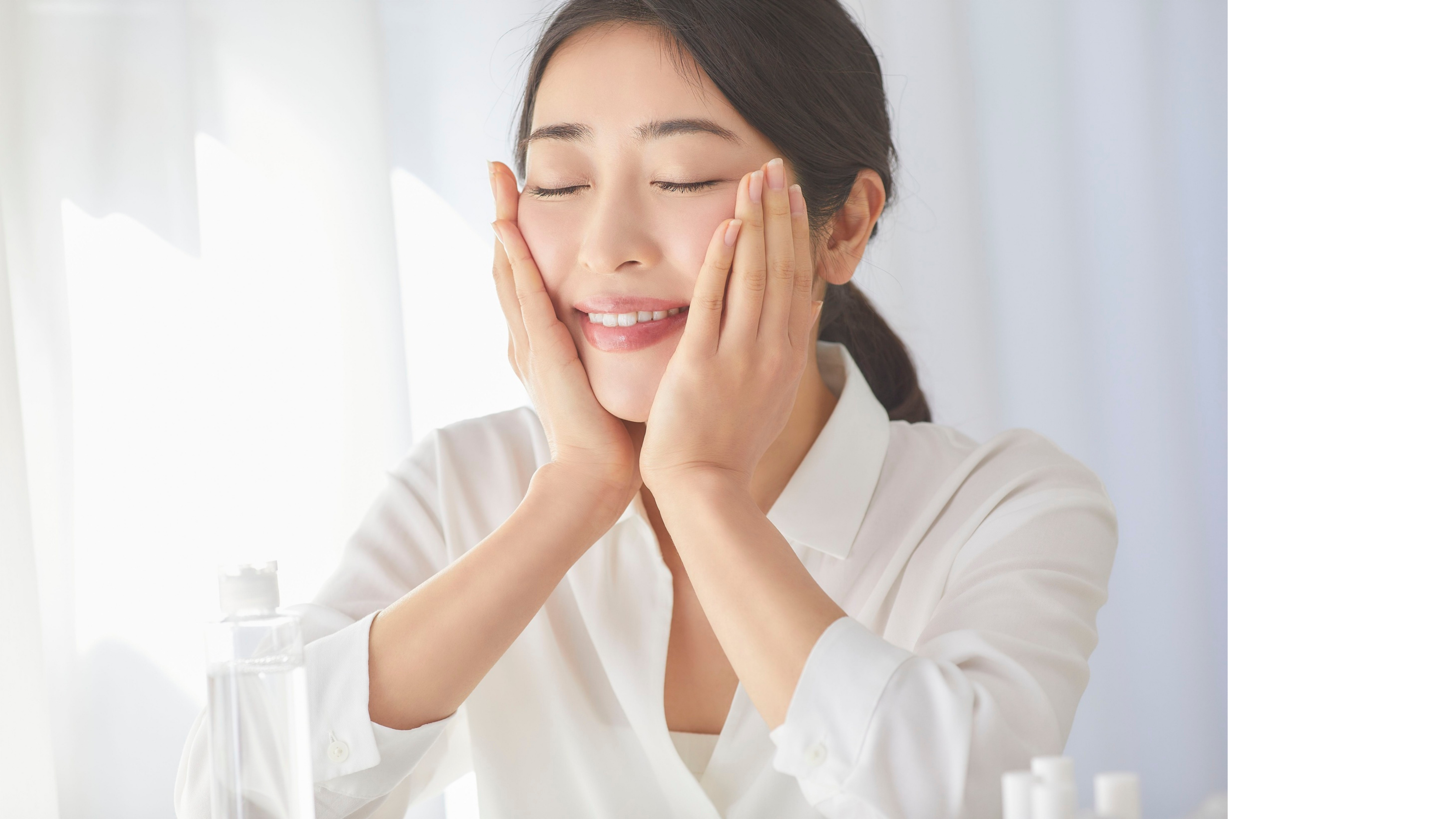 ・化粧水は「入れ込む」のではなく、手のひらでじんわり密着させましょう。